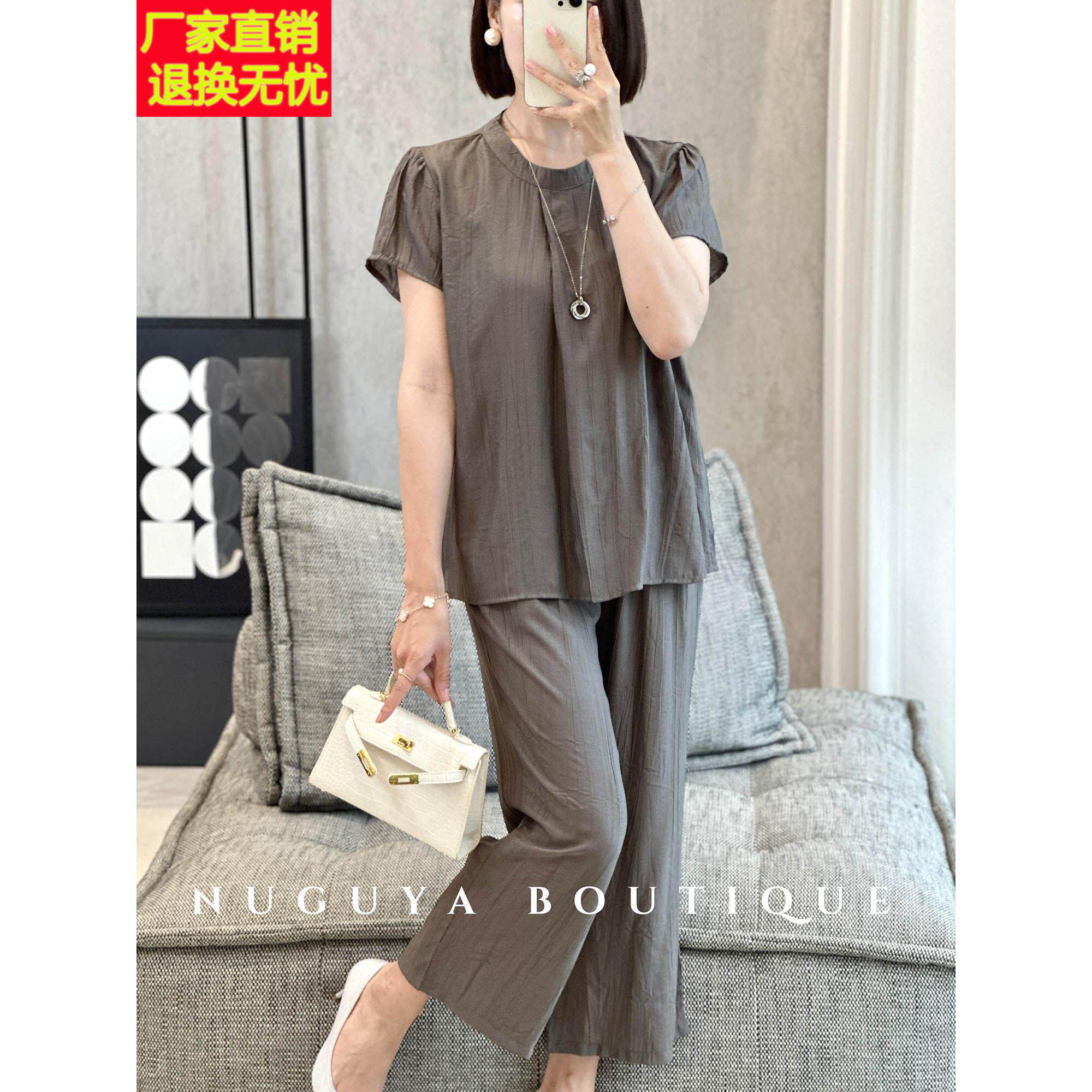 女短袖 中老年套装 2025年夏装 新款 两件套 时尚 气质显瘦妈妈装 休闲