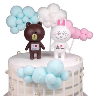 布朗熊可妮兔蛋糕装 饰摆件公仔玩偶七夕情人节网红情侣烘焙插件