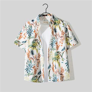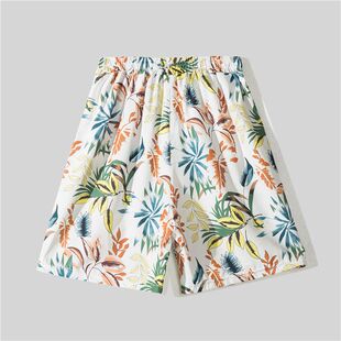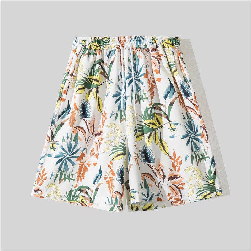 潮流百搭花色沙滩短裤 冰丝套装 衬衫 短袖 情侣搭配两件套 男速干夏季