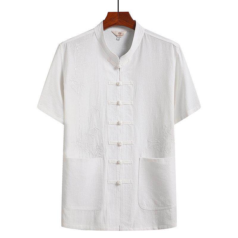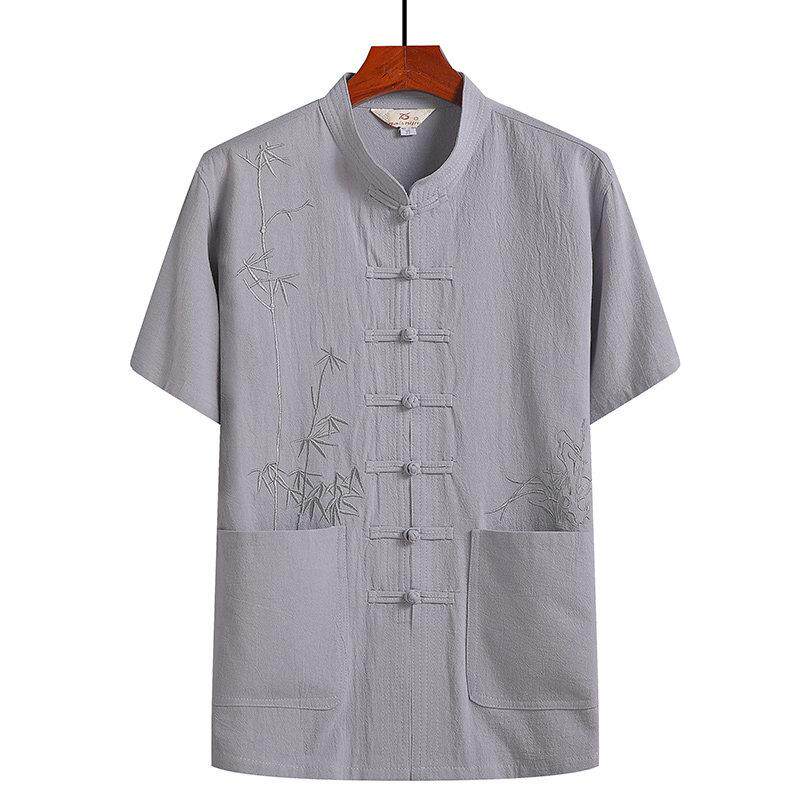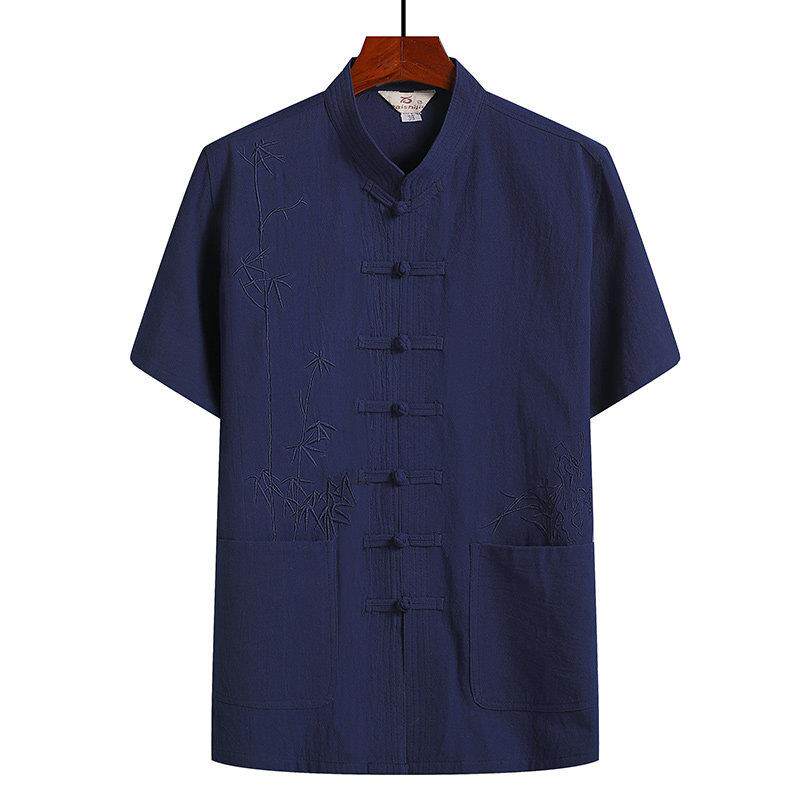 短袖 老人爷爷夏装 唐装 中老年中式 汉代棉质上衣 爸爸装 纯棉男式