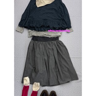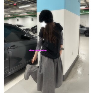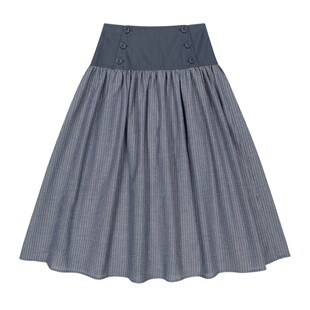 eihey诶嘿2026春季 肌理条纹拼接休闲双排扣高腰半身裙长裙女 新款