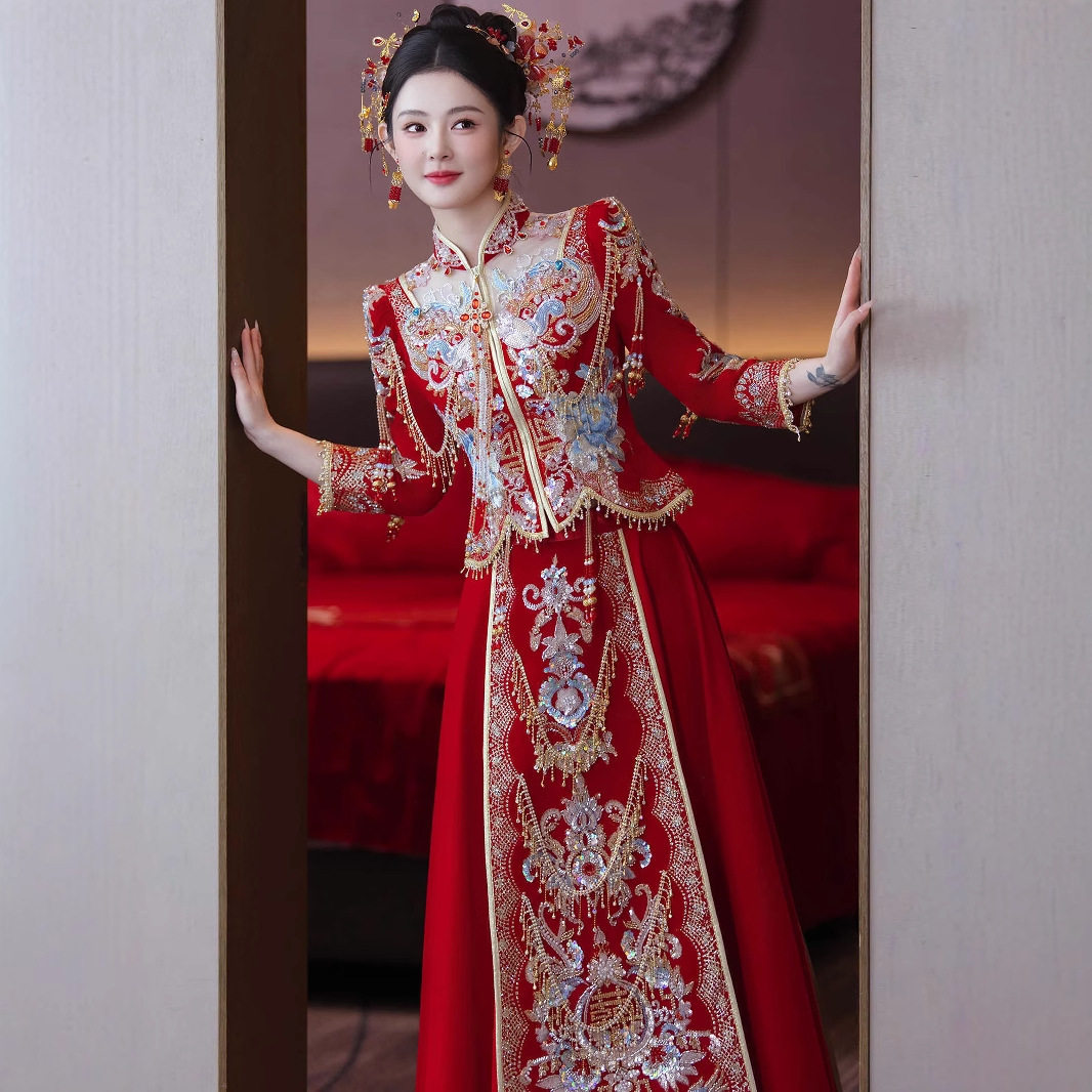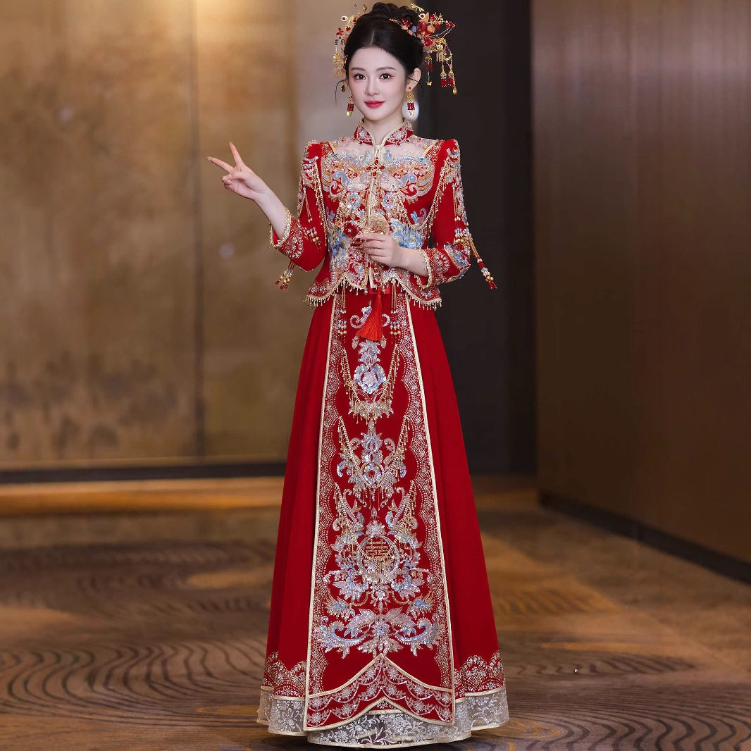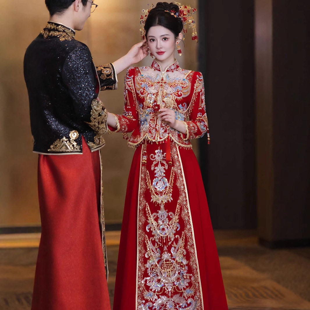 丝绒秀禾服2026新款 婚服敬酒服出阁服重工 新娘高端结婚礼服中式