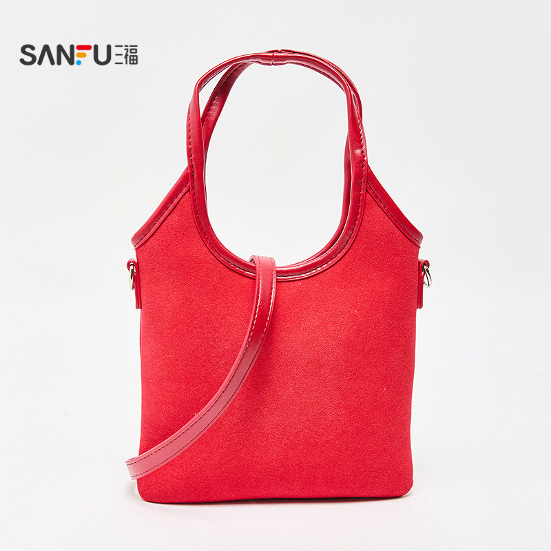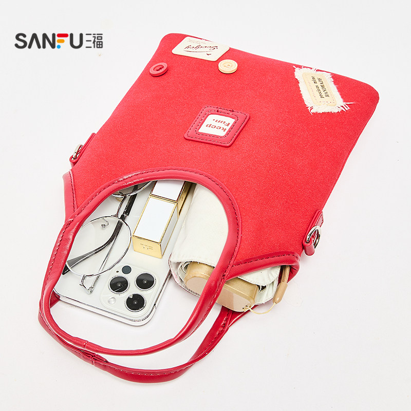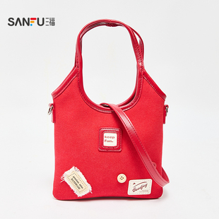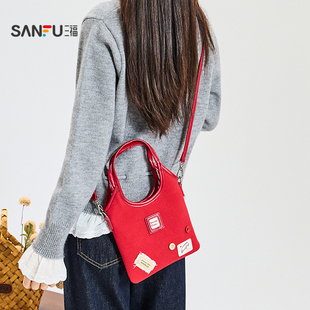 三福手提包秋季 学院风趣味立体贴布撞色拼接手提包女包508107