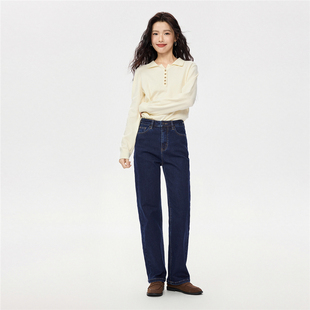 女05415690 加厚加绒重磅洗水高腰直筒牛仔裤 佐丹奴裤 子女秋冬新款