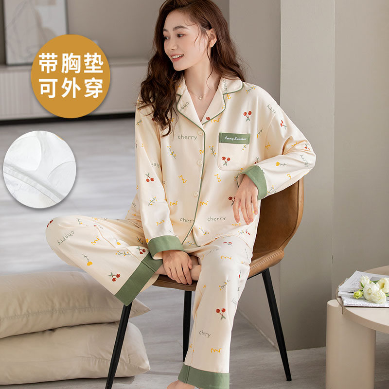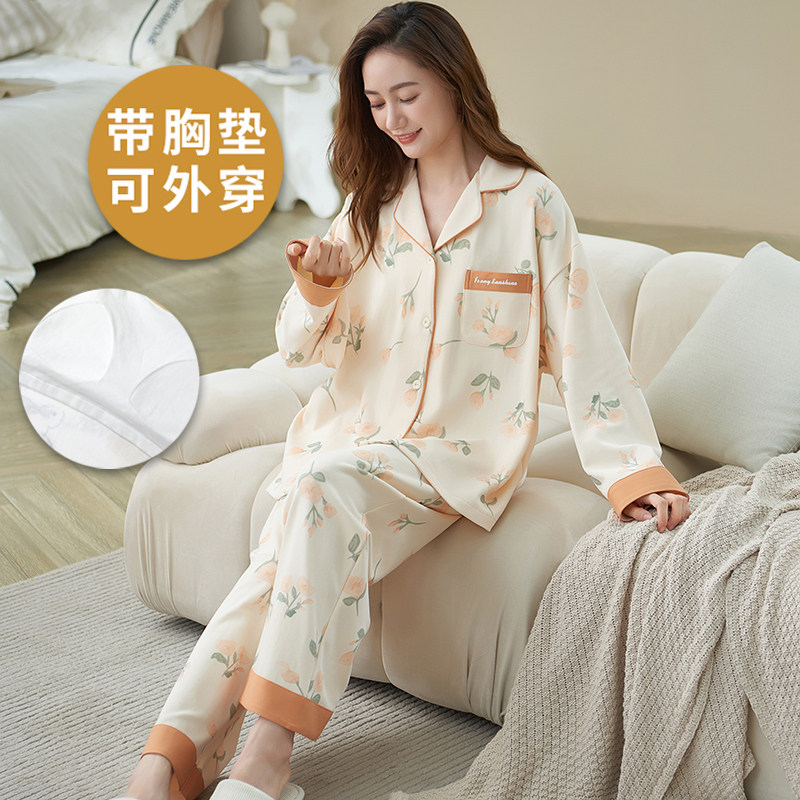 纯色大码 出口日本加厚纯棉情侣睡衣套装 家居服男士 长袖 女春秋季