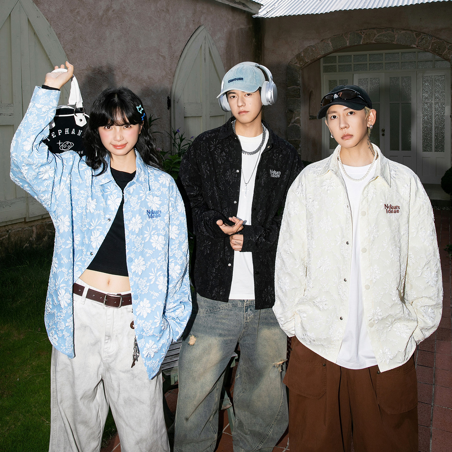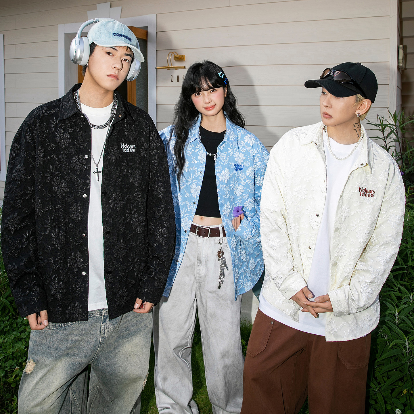 男女同款 衬衫 重工花卉浮雕肌理感学院风情侣舒适宽松唐装 NOTEARS