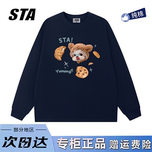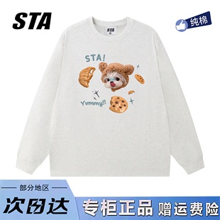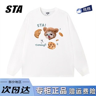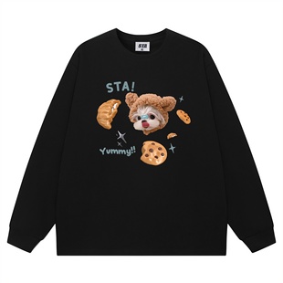 STA旗舰店趣味小狗印花长袖 潮牌重磅纯棉宽松情侣卫衣 男女美式