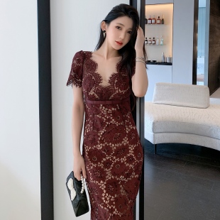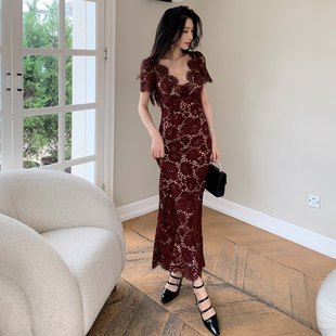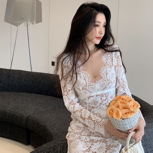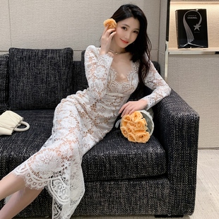连衣裙法式 气质收腰镂空蕾丝长款 优雅女人味礼服 流行穿搭风格 秋季