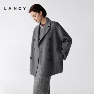 双面呢中长款 朗姿2025冬新款 LANCY 翻领大衣外套女 100%山羊绒