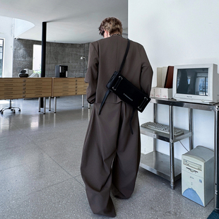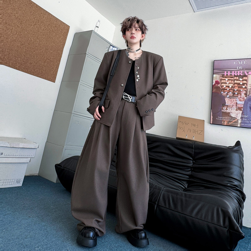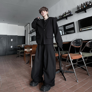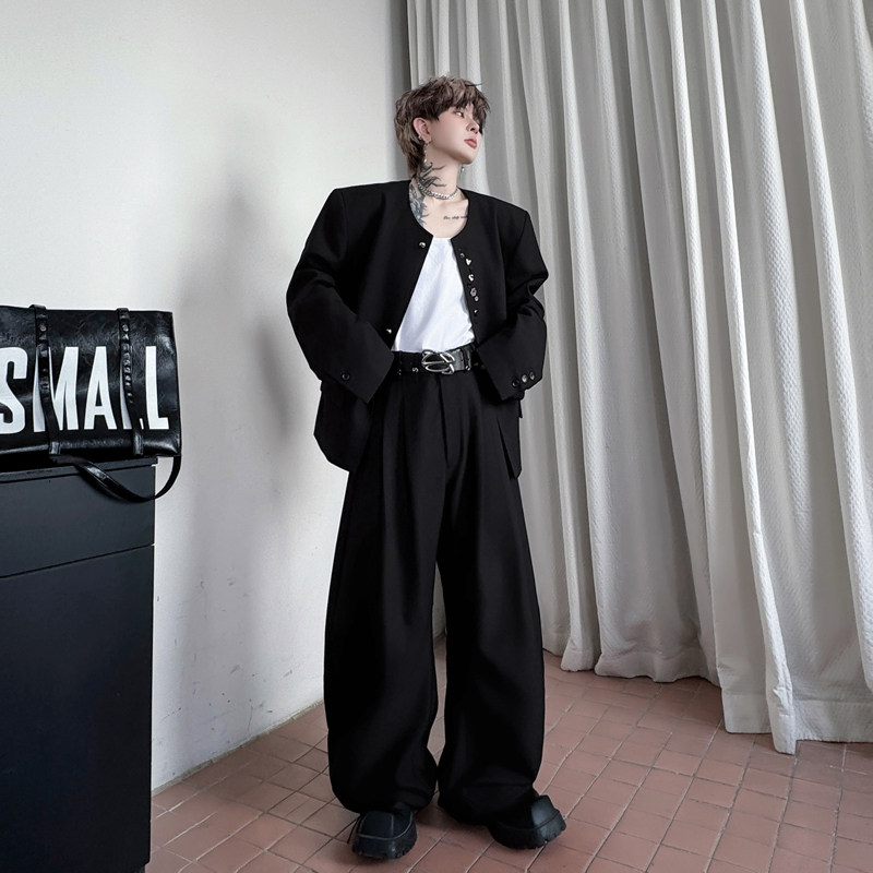 男雅痞高级感阔腿西裤 饰垫肩西服套装 两件套 复古小众多纽扣装 秋季
