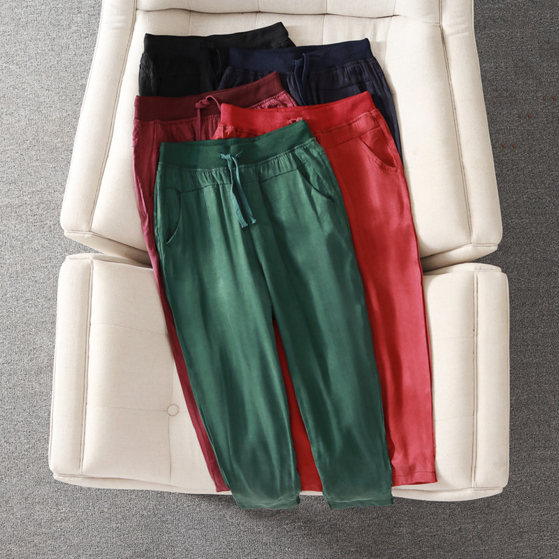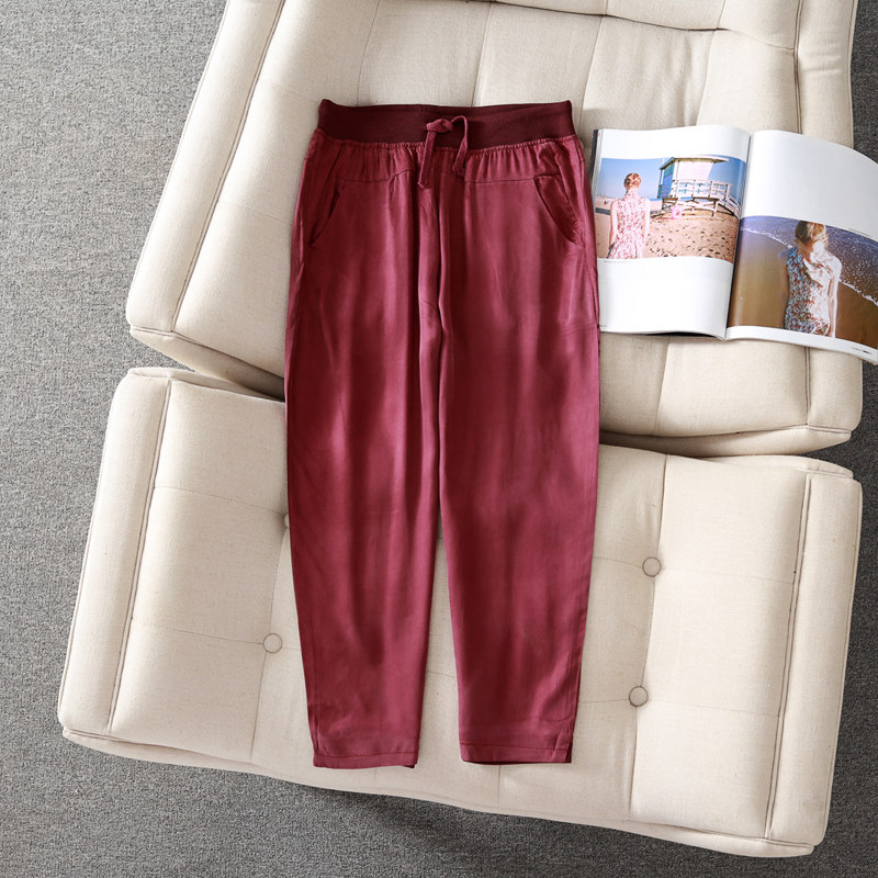 宽松缩脚裤 女缩口裤 收 九t分重磅铜氨丝束脚裤 2020夏新真丝收腿裤