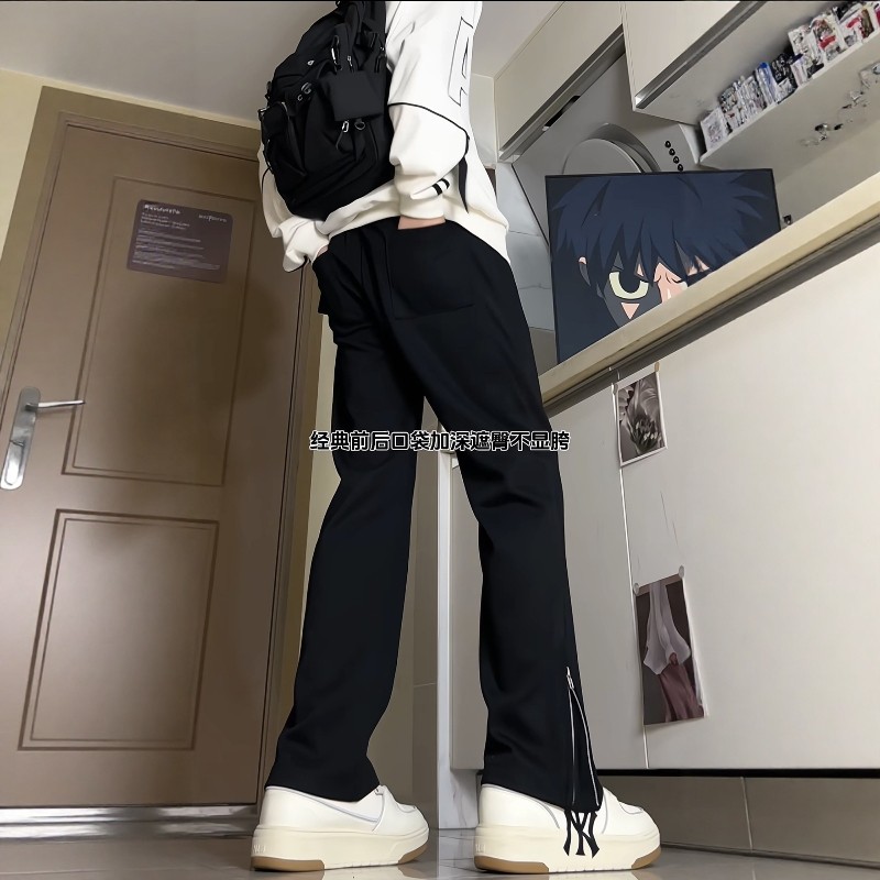 男秋季 弯刀直筒裤 美式 子加长款 120cm超长 运动裤 高个子微喇休闲裤