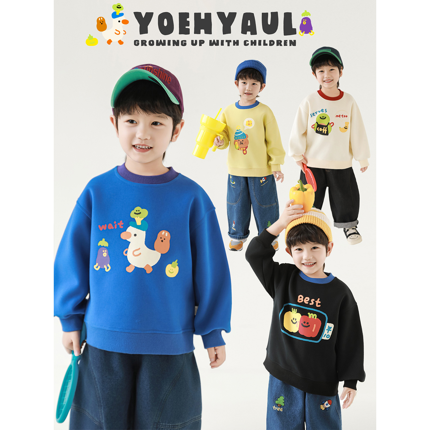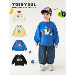 流行宽松保暖儿童百搭上衣 圆领卡通卫衣秋季 幼悠男童2025新款 长袖