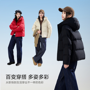 短款 雪中飞25冬新款 羽绒服小个子女冬休闲连帽面包服显瘦 现货