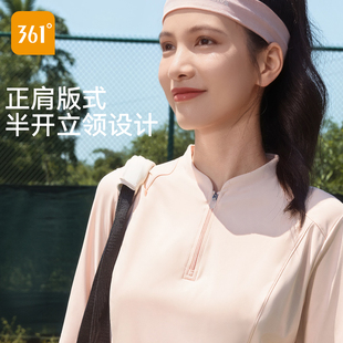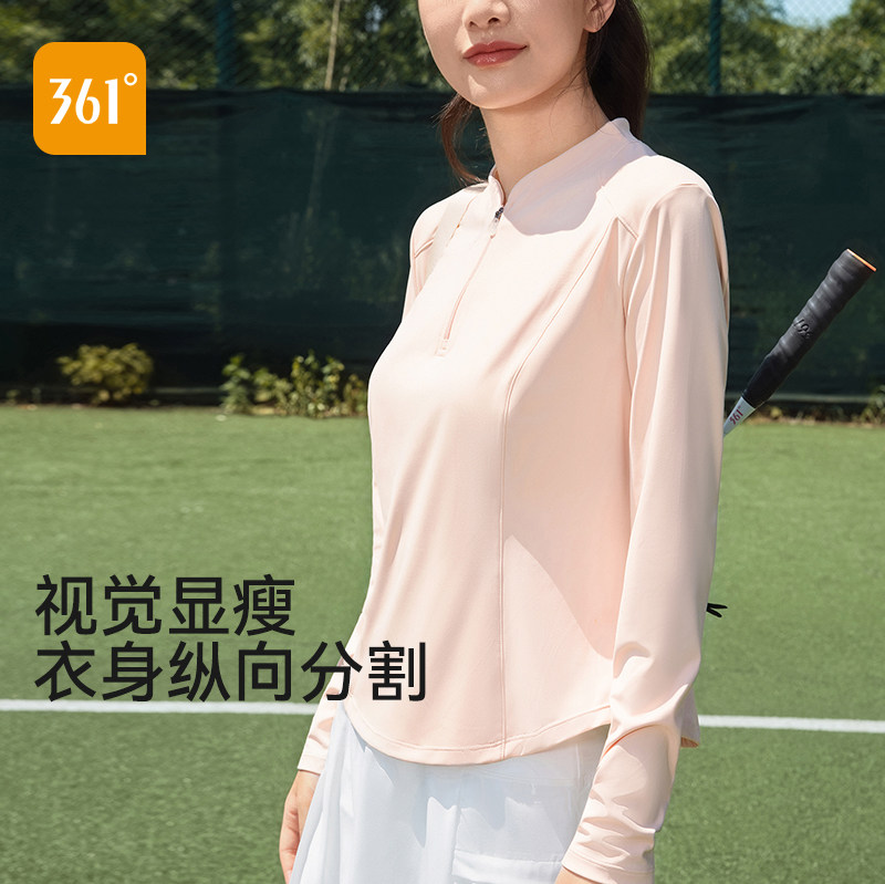 跑步羽毛球瑜伽服健身服 粉色修身 361运动上衣女半拉链长袖 t恤秋季