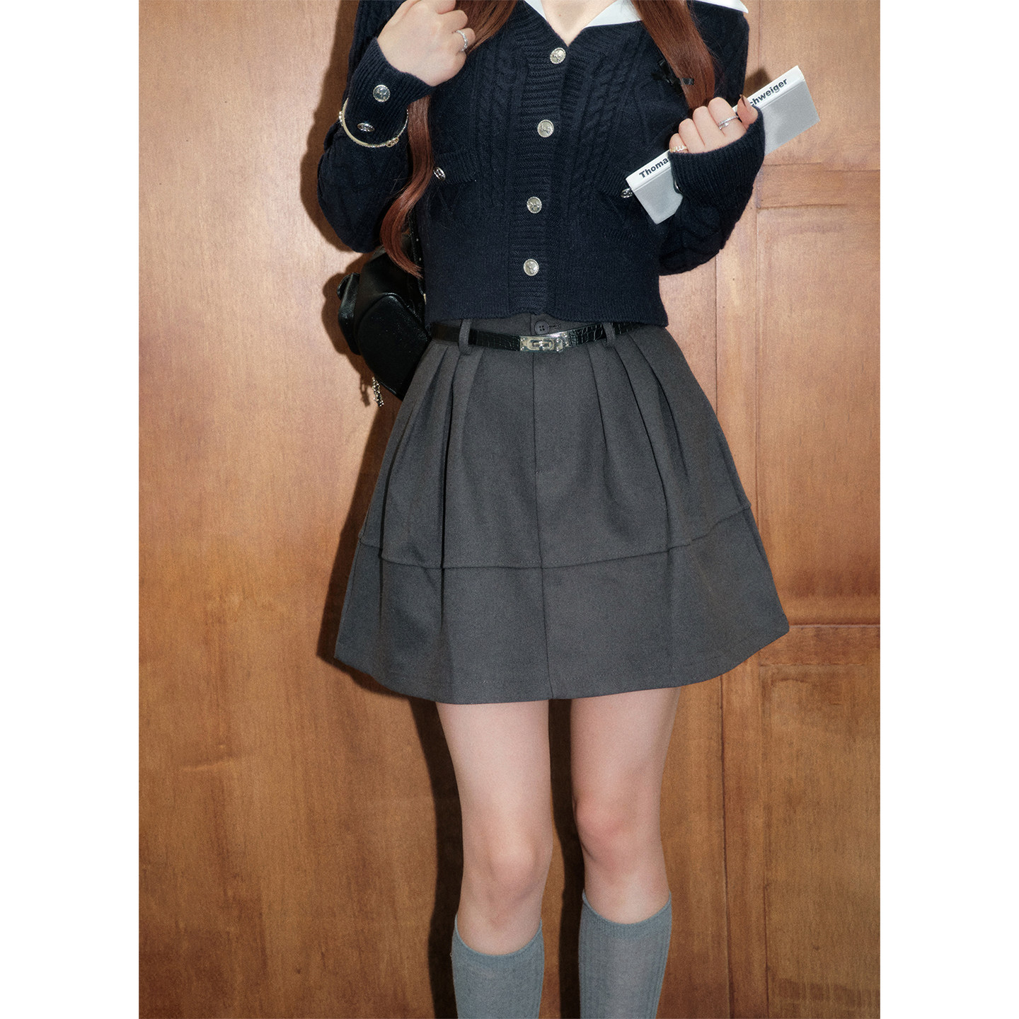 灰色毛呢半身裙女秋冬假两件百搭复古裙裤 NanaByNana 温莎往事
