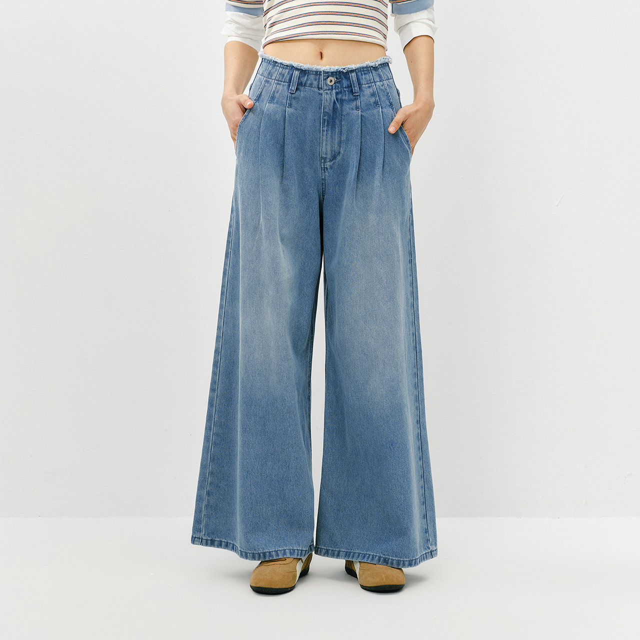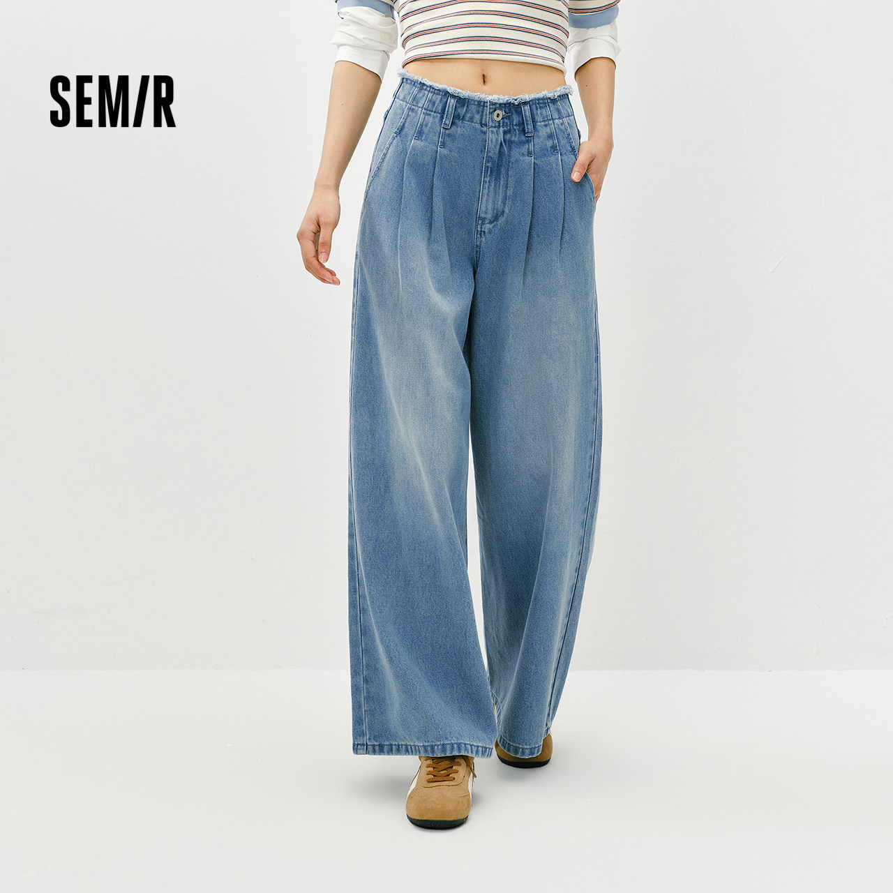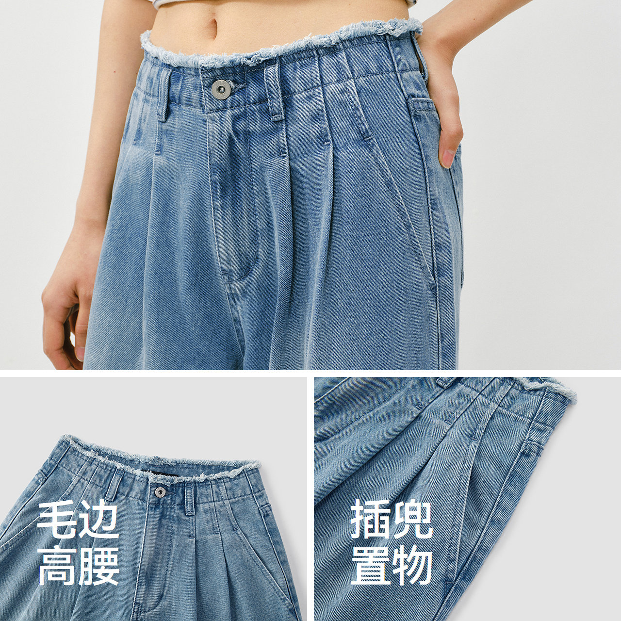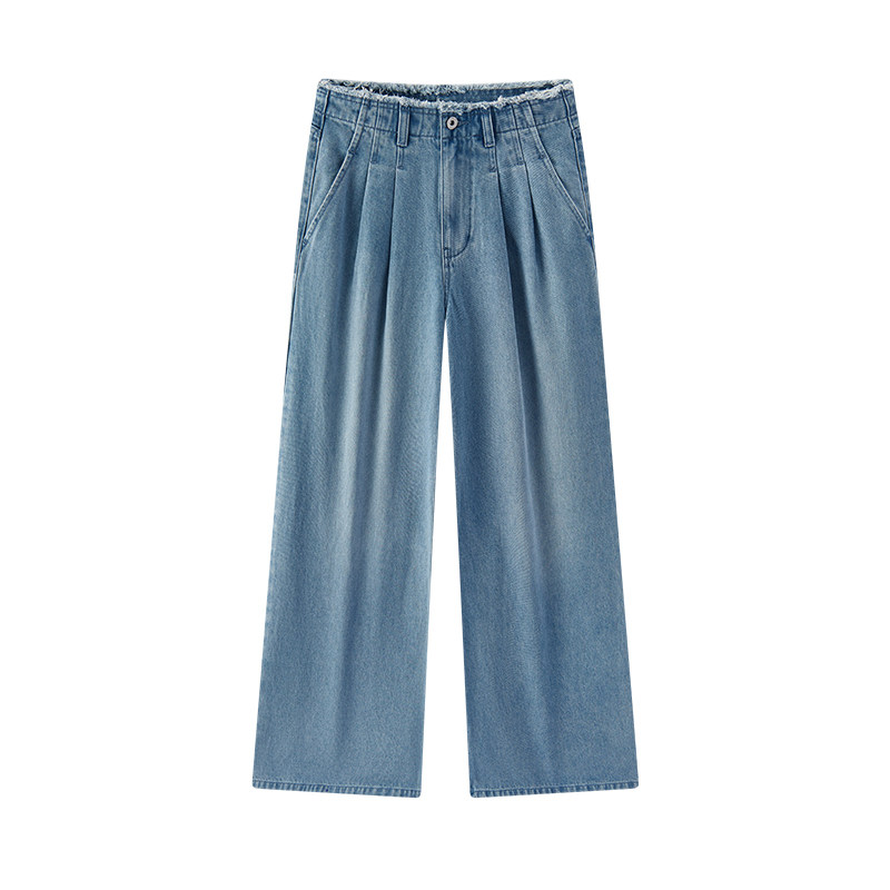 森马牛仔裤 显腿长潮流拖地裤 女春季 2026新款 毛边高腰阔腿裤 森柔
