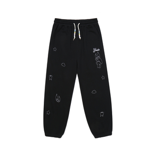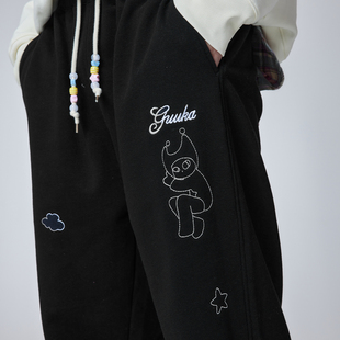 绳束脚裤 GUUKA潮牌黑色青少年卫裤 彩色珠子裤 重磅纯棉 子宽松 男款