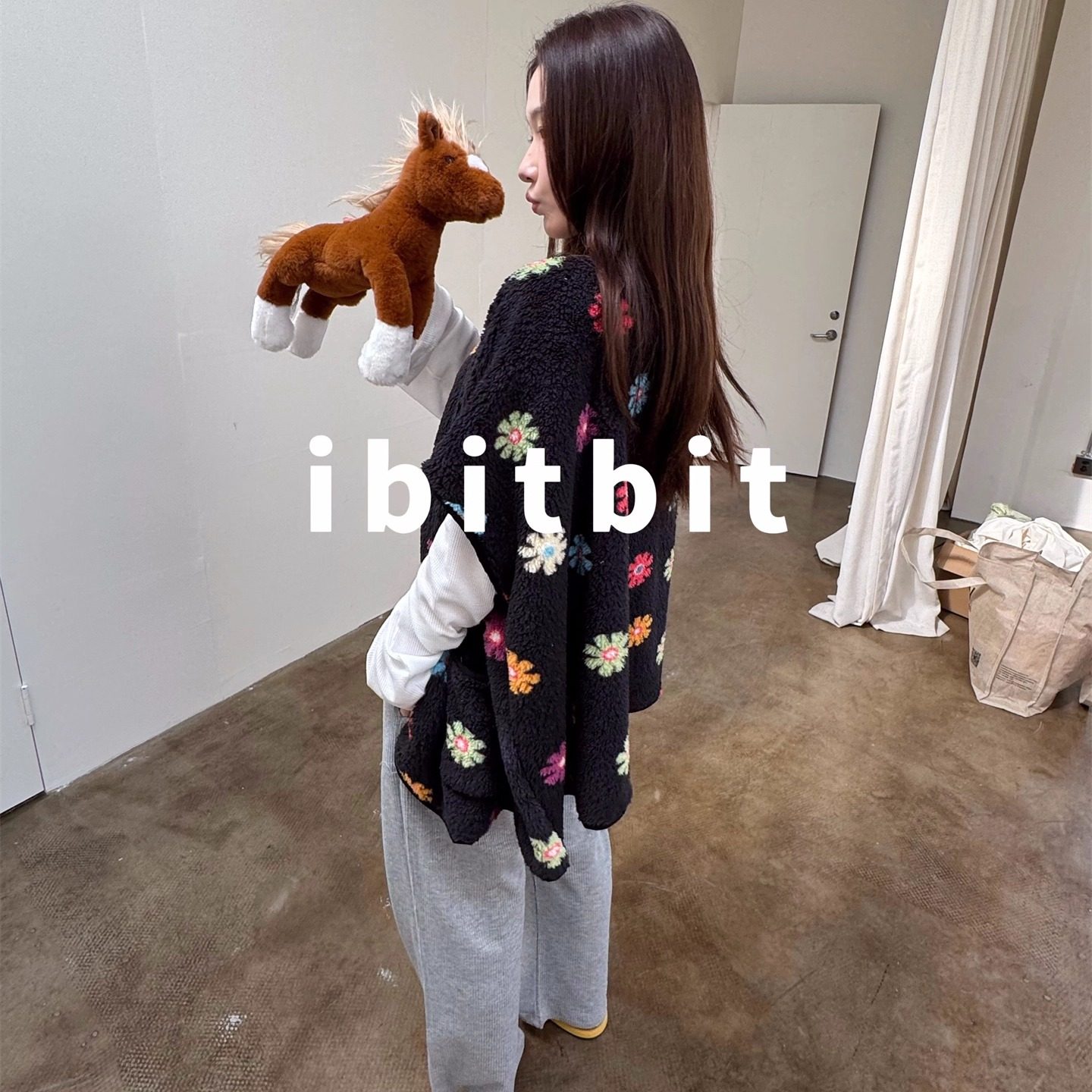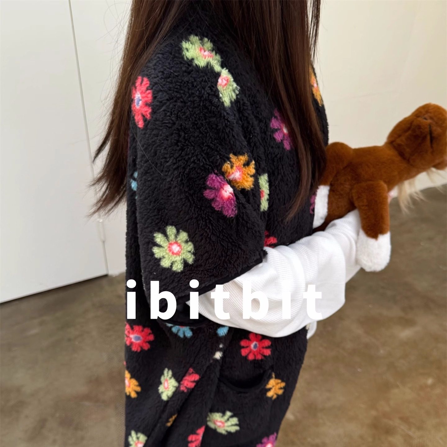 双色珊瑚绒保暖落肩马甲披肩背心撞色花朵休闲家居服睡衣女可外穿
