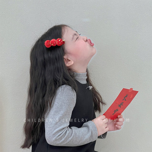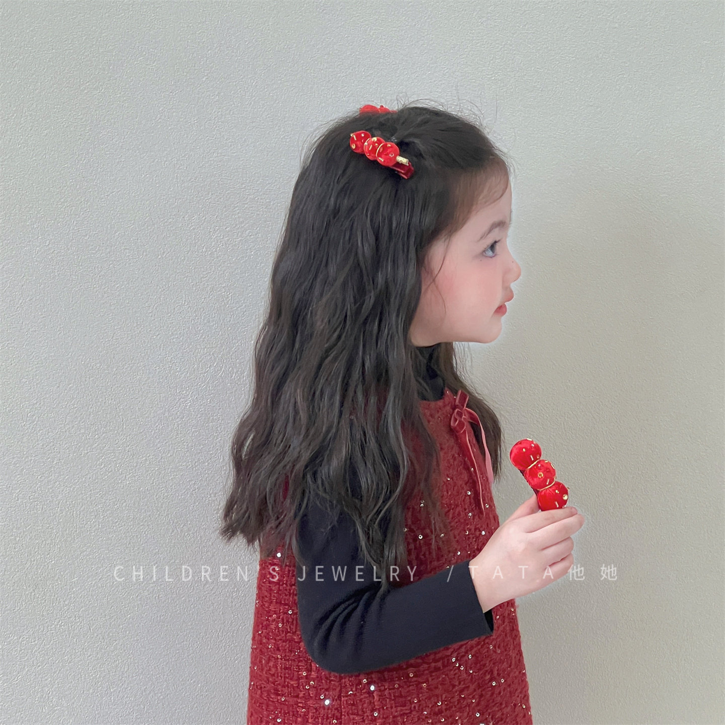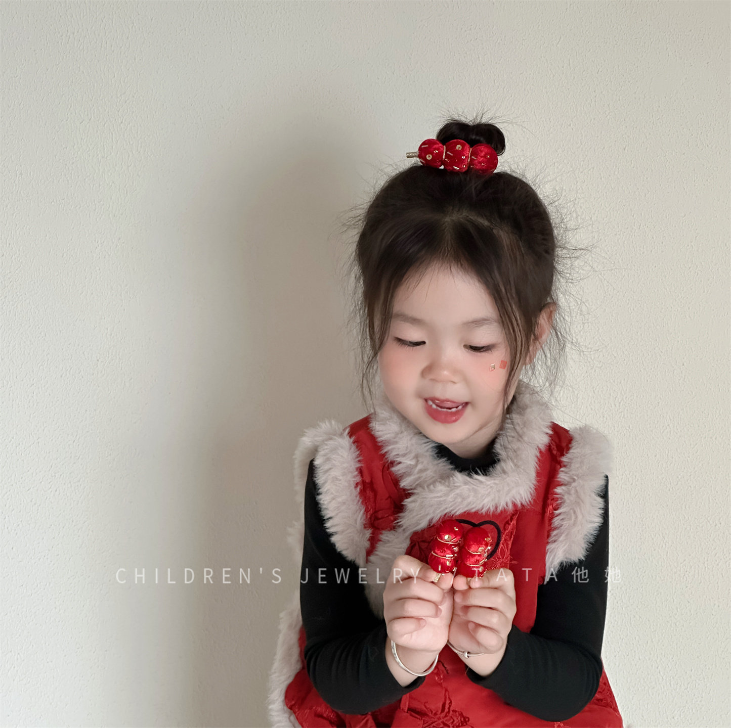 新年中国风糖葫芦可爱发圈皮筋红色喜庆头饰女童高级感丝绒头绳