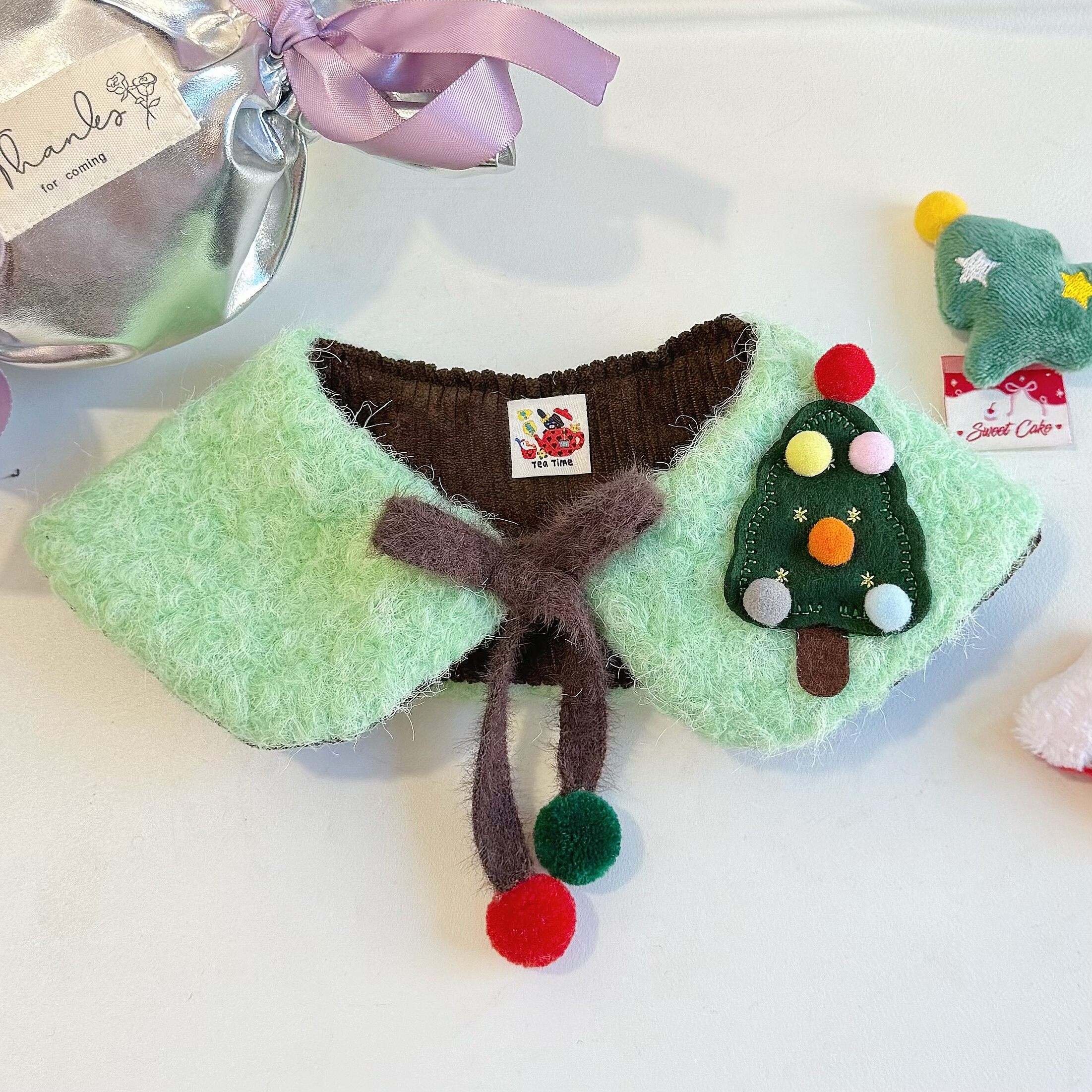 圣诞快乐呀宠物披风猫咪狗狗毛呢围兜布偶约克夏德文保暖围脖斗篷