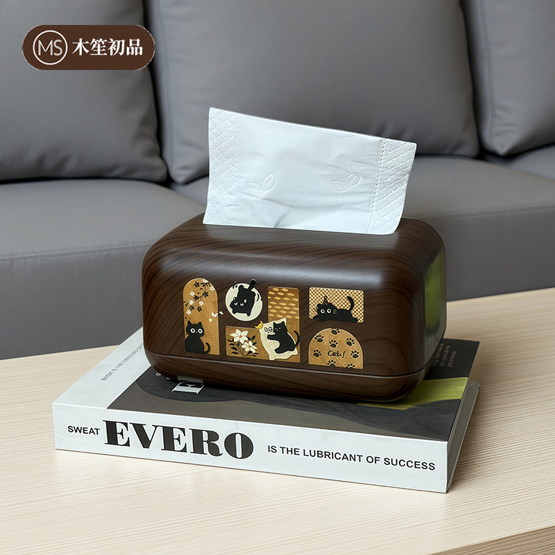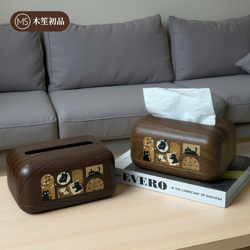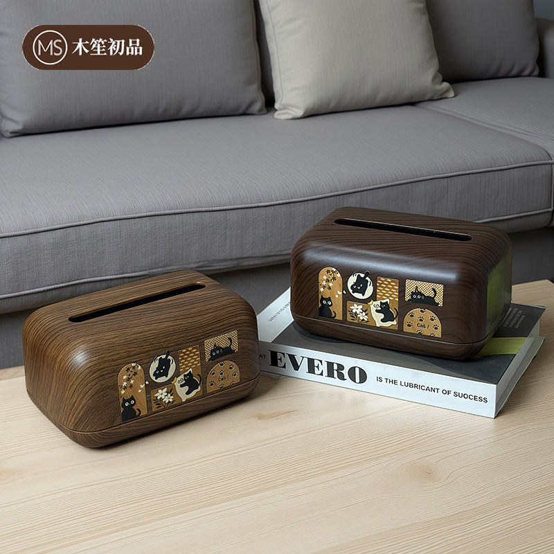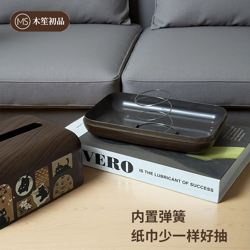 木纹纸巾盒家用客厅轻奢高档中古风抽纸盒高级感复古茶几收纳盒