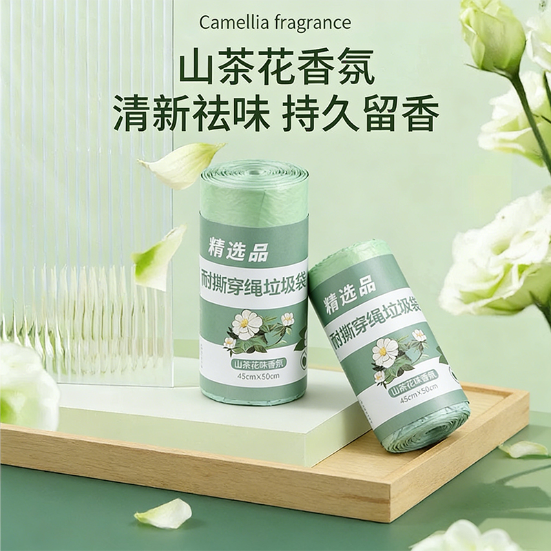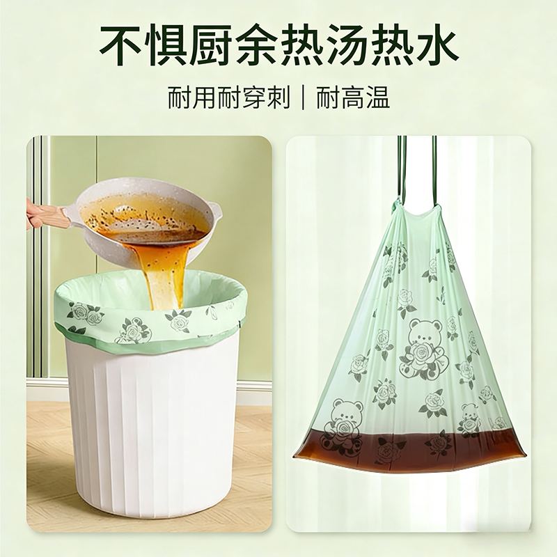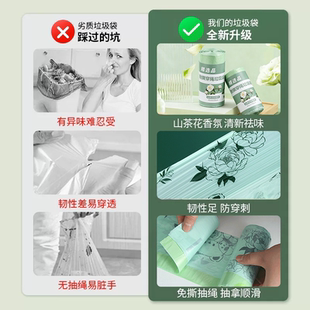 山茶花免撕垃圾袋家用加厚手提式 抽绳厨房大号塑料袋蚊虫宿舍特厚