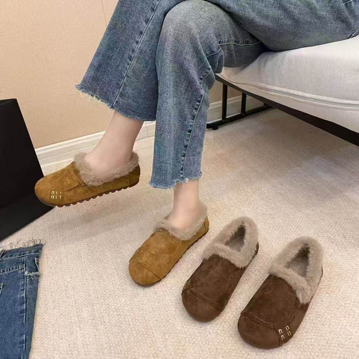 雪地靴妈妈鞋 复古脚蹬豆豆防滑保暖毛毛棉鞋 耐磨 新款 加绒软底冬季
