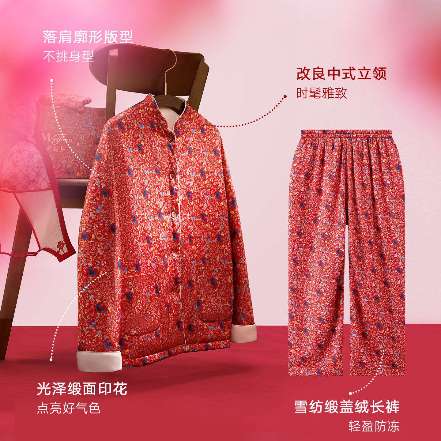 小兔子满印女士家居服套装 毛绒保暖新款 果壳睡衣女冬季 Gukoo