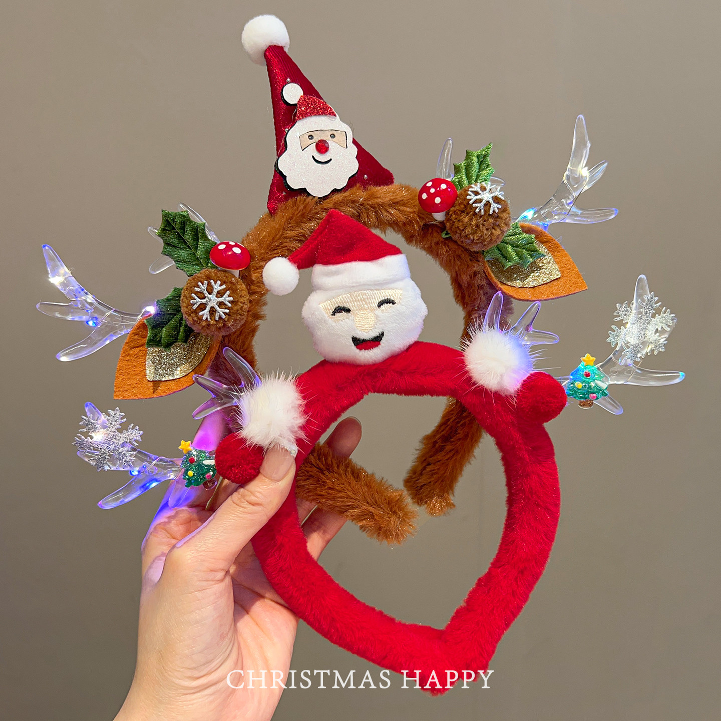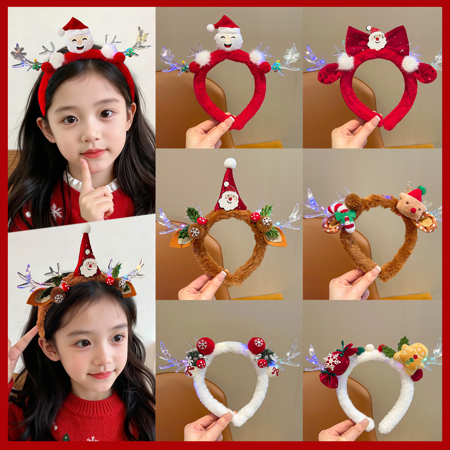 圣诞节儿童发箍氛围感女孩发光麋鹿头箍节日新款 饰发饰 防滑女童装