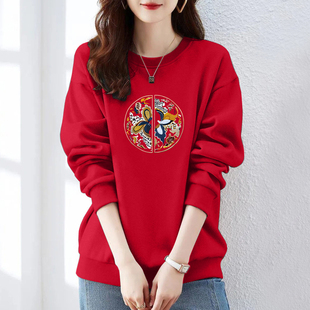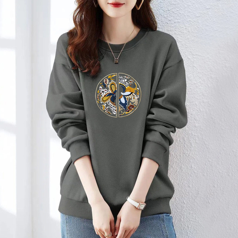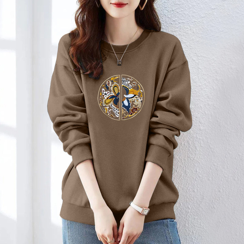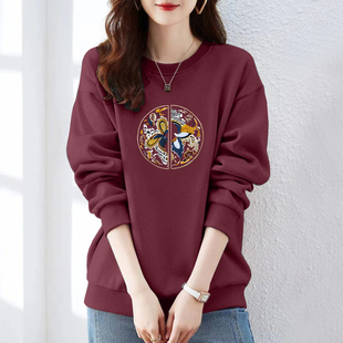 品牌外贸出品纯棉长袖 上衣 气质休闲卫衣女秋冬宽松加绒加厚打底衫