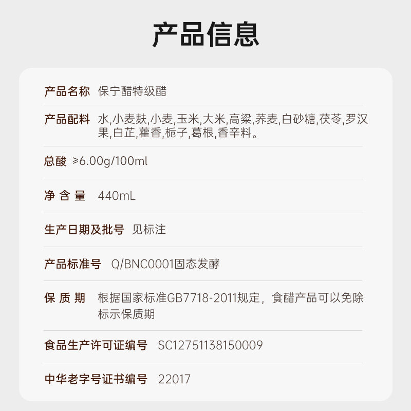保宁醋特级440ml家用食用醋四川特产陈醋饺子0添加老陈醋酿造纯粮
