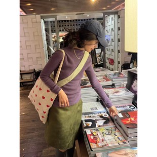 上衣 显瘦半高领长袖 日系复古高级感葡萄紫色针织打底衫 女弹力修身