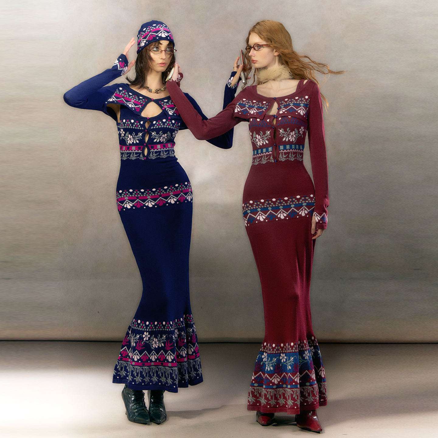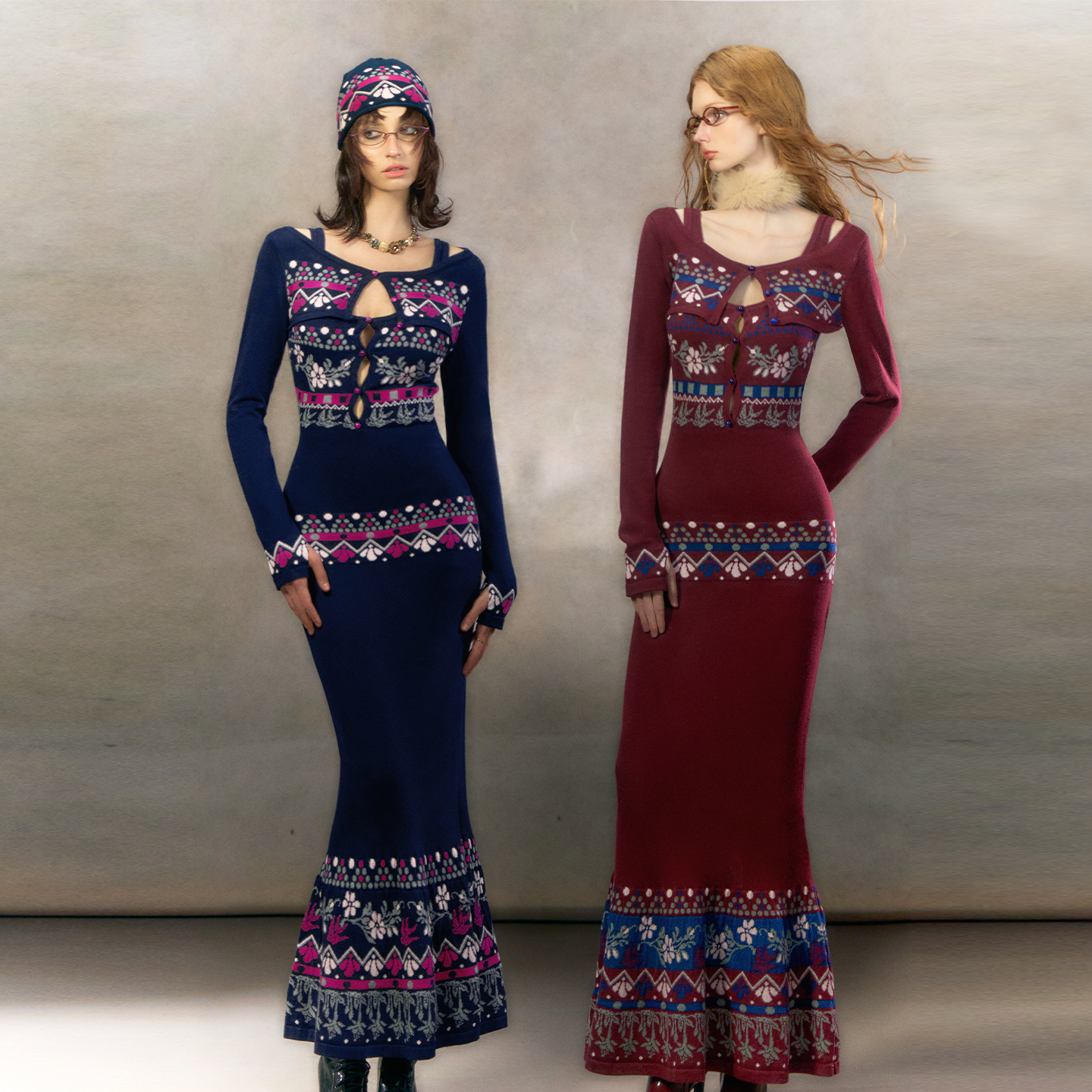 费尔岛圣诞针织连衣裙女镂空设计鱼尾裙套装 OfAkiva 从那天起