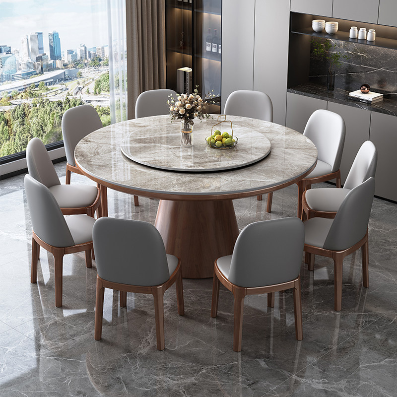 实木岩板圆桌现代简约家用饭桌带转盘轻奢圆形餐桌十人酒店大圆桌