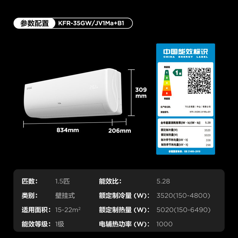 小米新风空调1.5匹挂式 新一级能效 家用四层净化冷暖变频智能互联