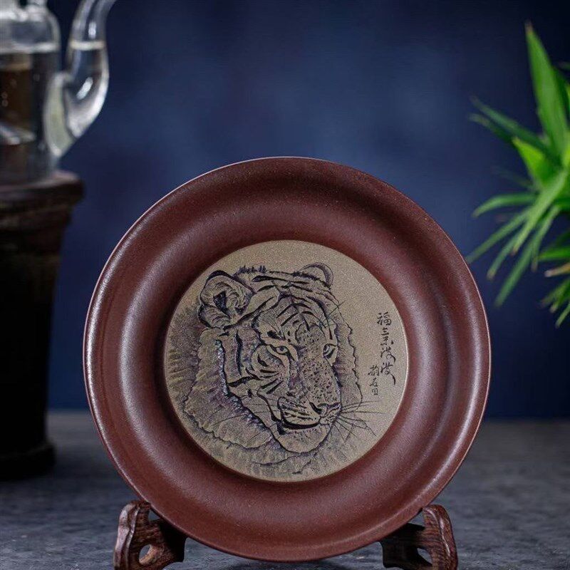 精品紫砂原矿老紫泥老虎茶盘壶承福气满满高端茶器精品茶具配件