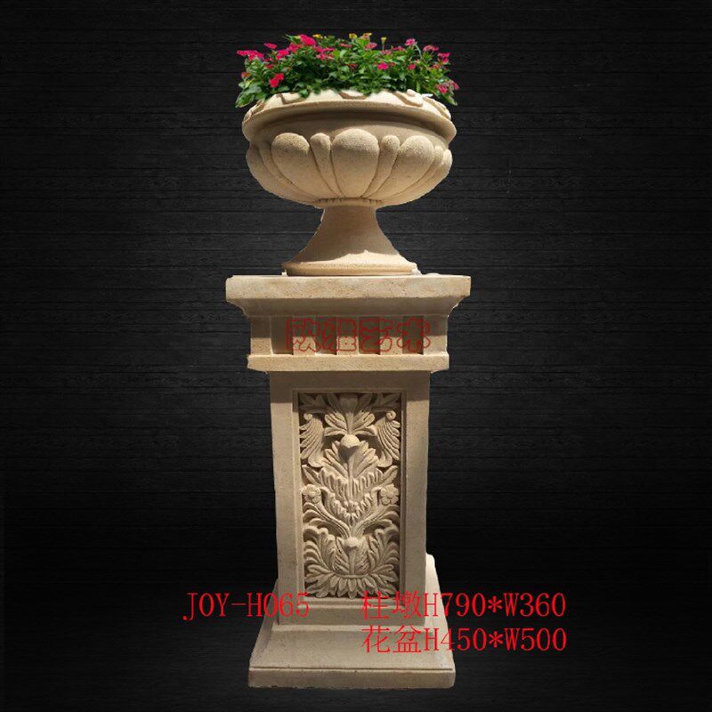 欧雅GRC玻璃钢人造石砂岩柱子柱墩花盆雕塑园林景观装 饰摆件定制