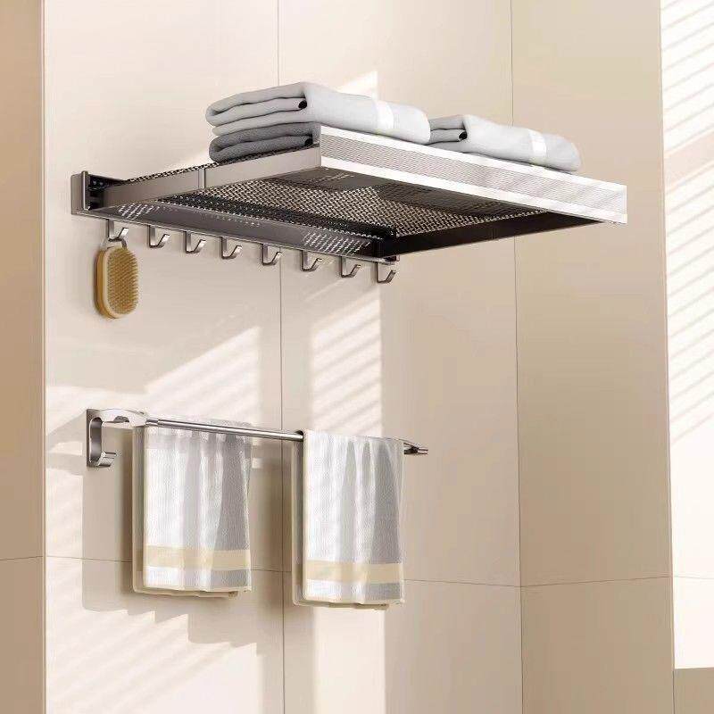 毛巾架免打孔卫生间置物架浴室架子枪灰太空铝挂件一体壁挂浴巾架