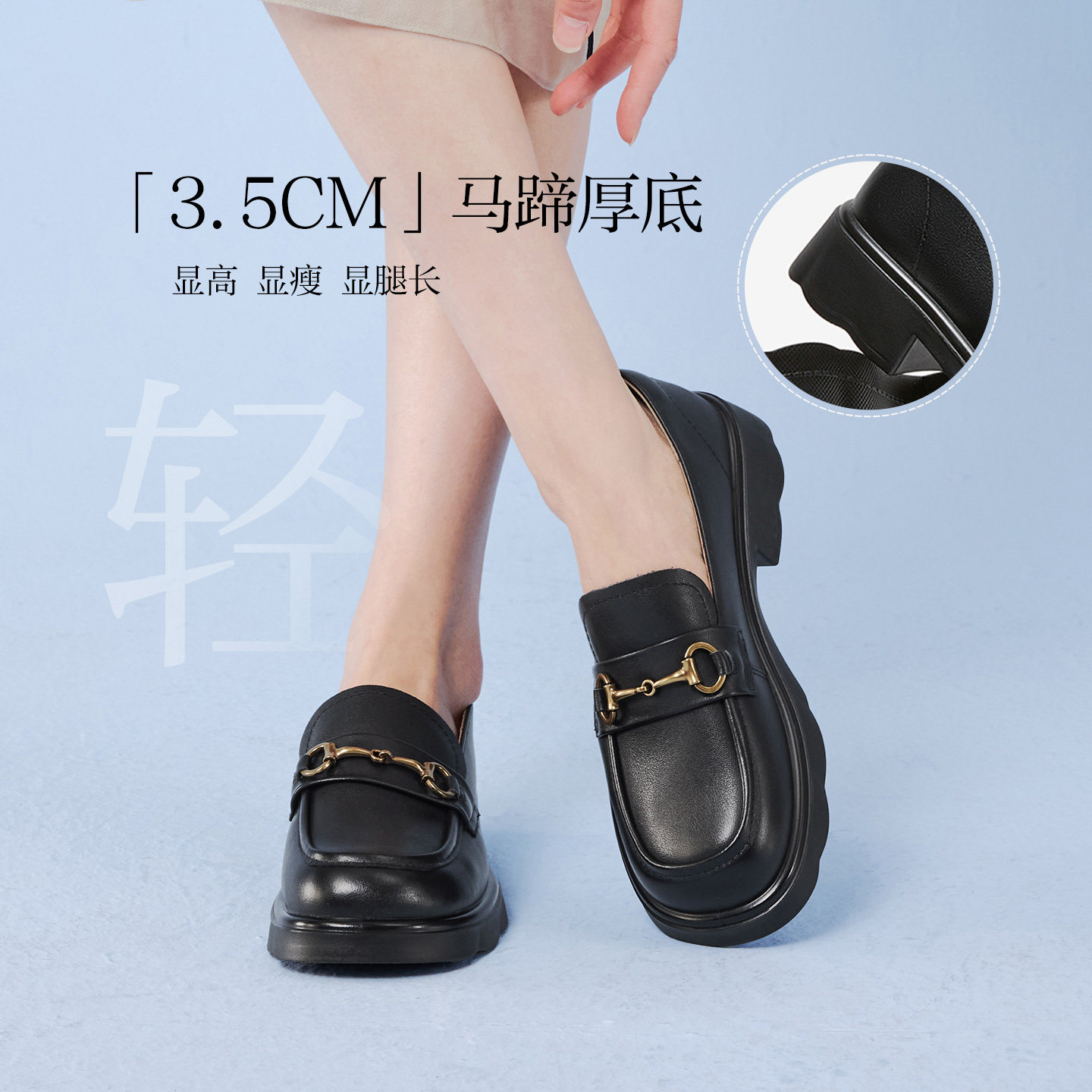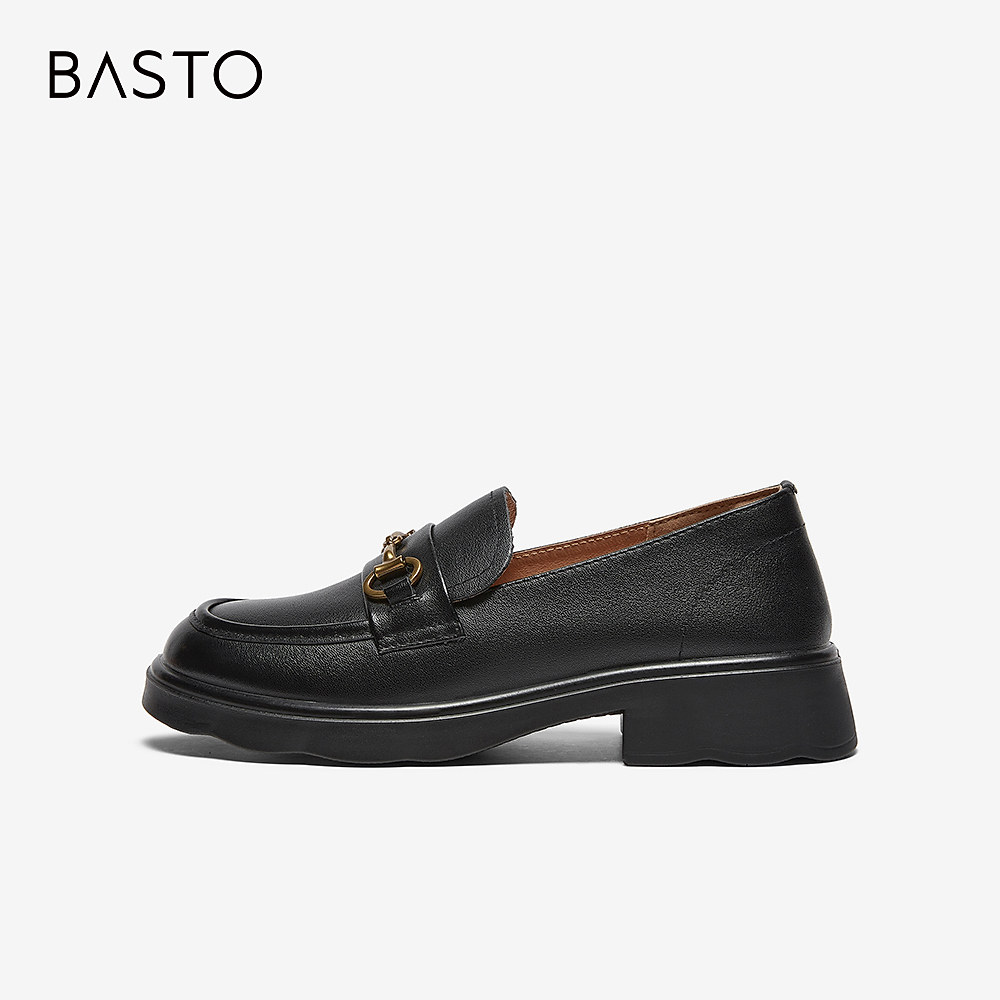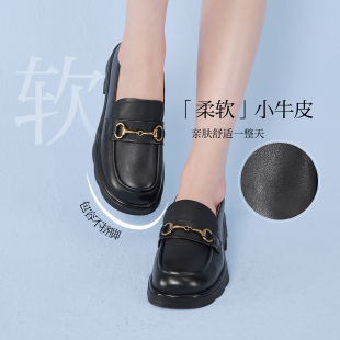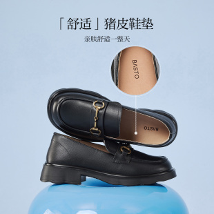 简约学院风复古金属扣女单鞋 乐福鞋 A0601AA6 新款 百思图2026春季
