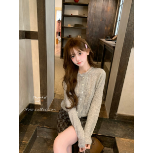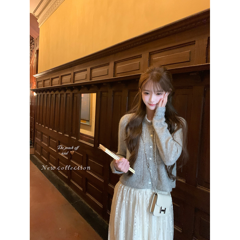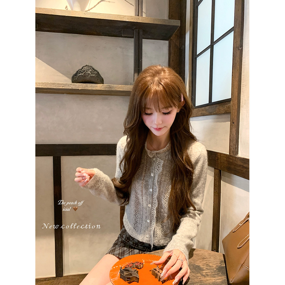 韩系镂空蕾丝立领马海毛针织开衫 thepeachofficial 芭蕾艺术生