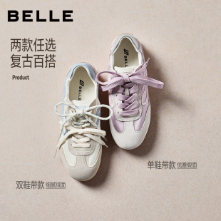 休闲鞋 带2026年新款 B2983AM6 双鞋 百丽软心糖抽褶缎面薄底德训鞋