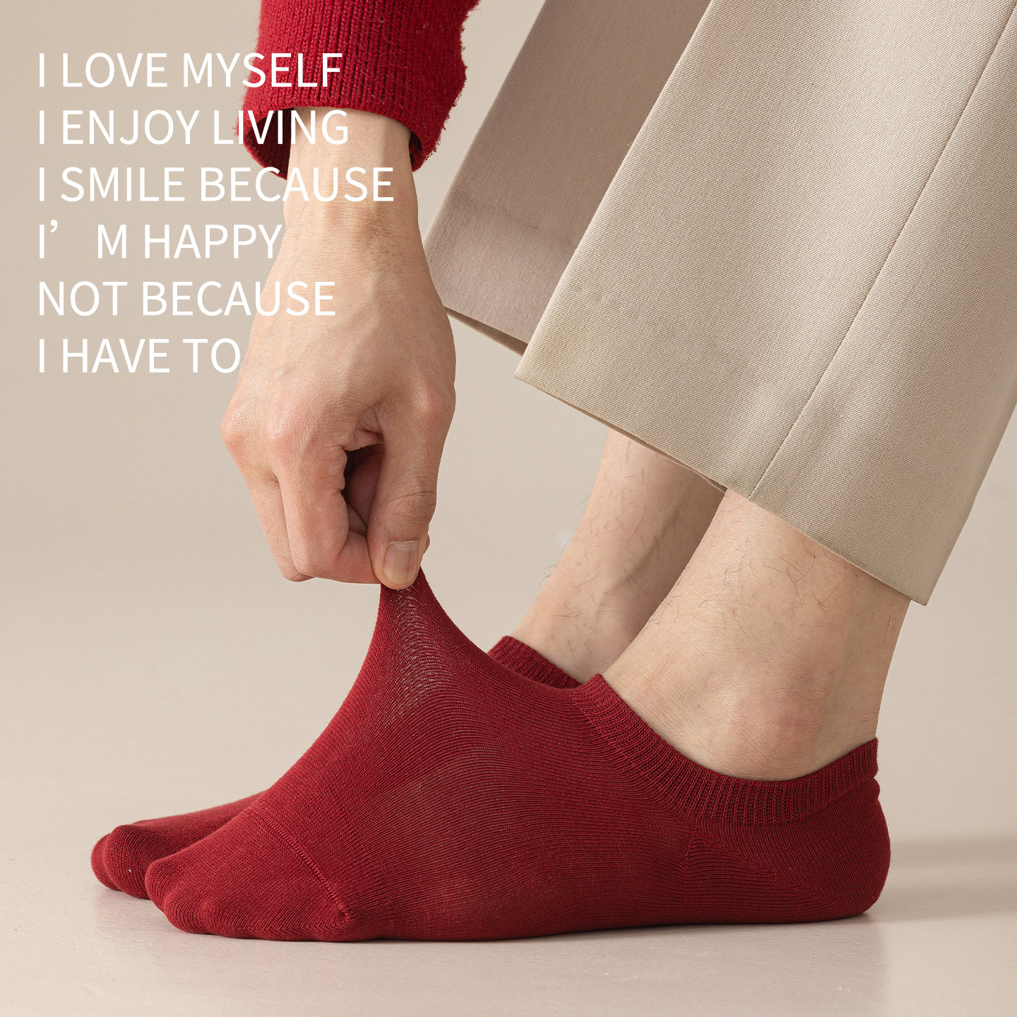 100%纯棉春秋薄款 船袜短袜子浅口本命年大红色酒红不掉跟低帮 男士