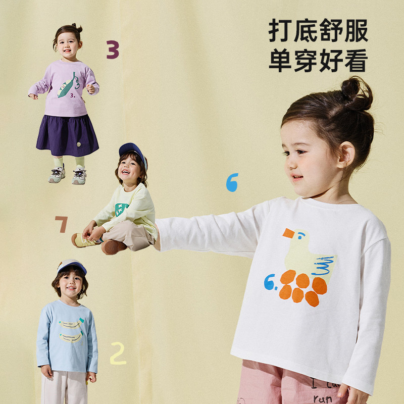 软软棉 男女童新品 papa爬爬春季 T恤打底衫 纯棉上衣 儿童长袖