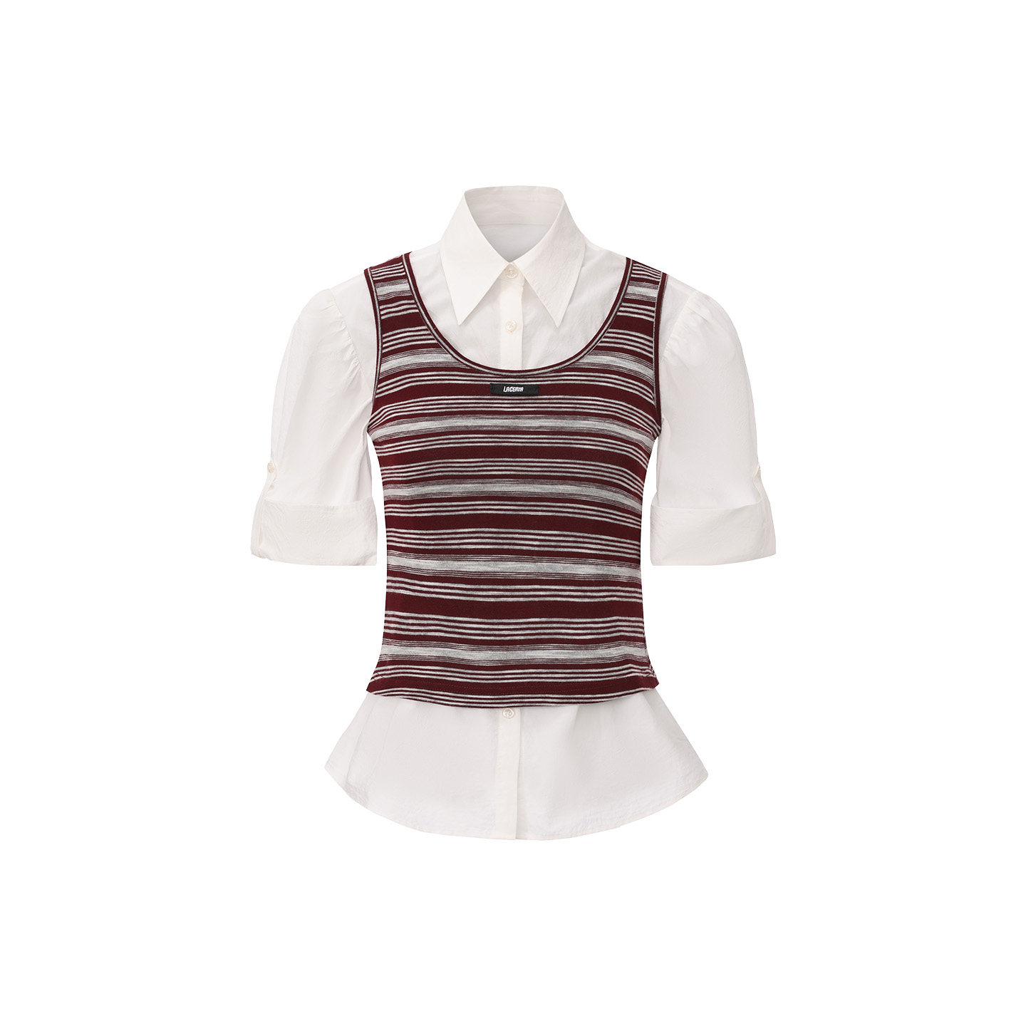 两件套上衣女 衬衫 LACERTA2026春夏新款 撞色学院风针织背心短袖