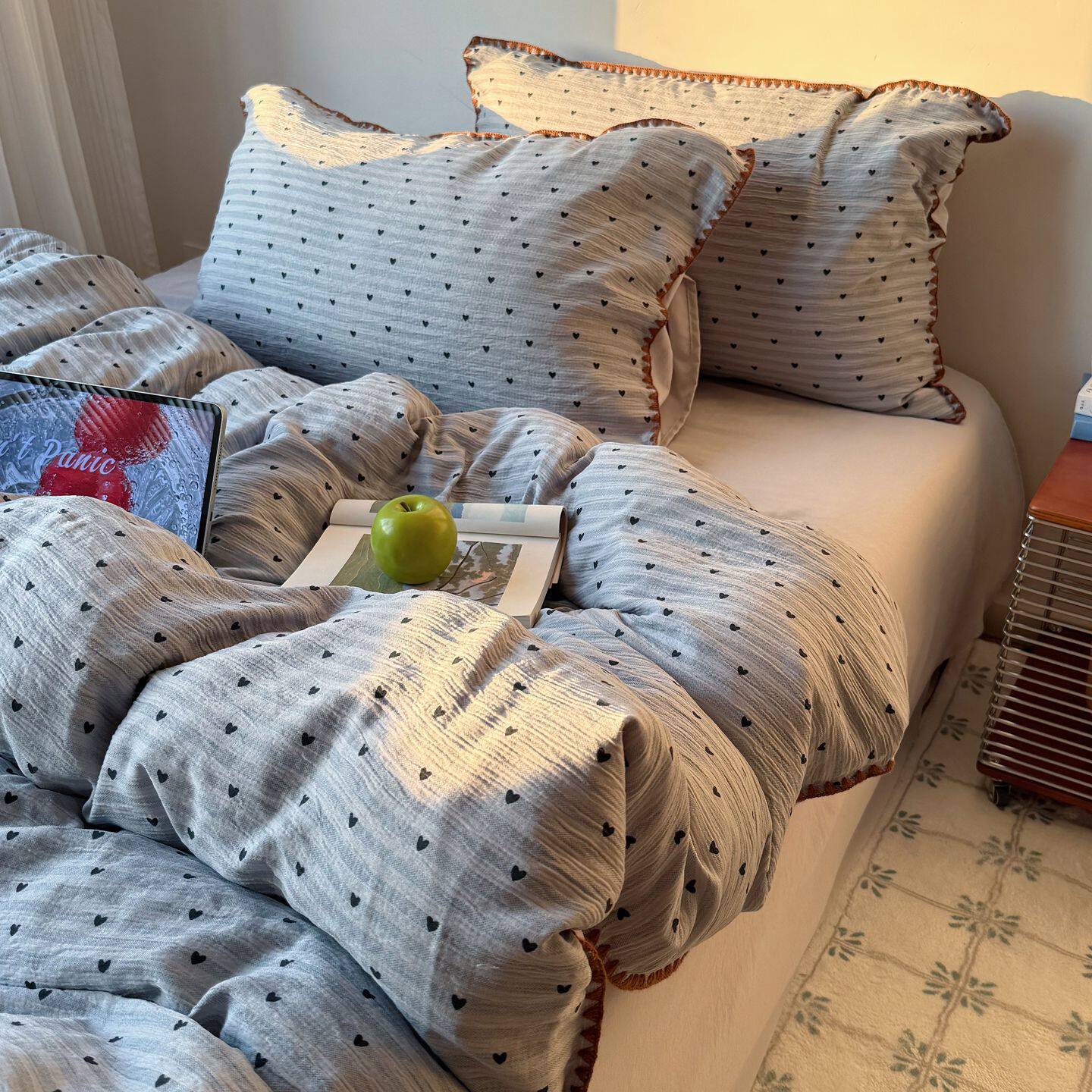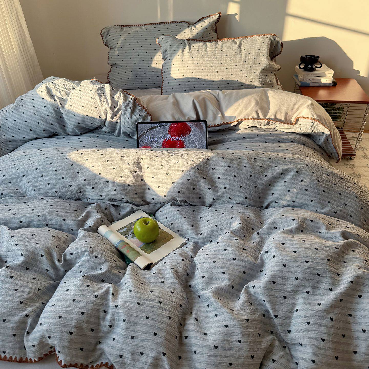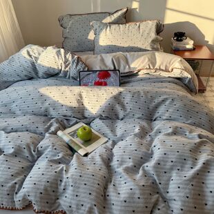 A类双层纱贝壳边床上四件套纯棉全棉2025新款 床单被套宿舍三件套4