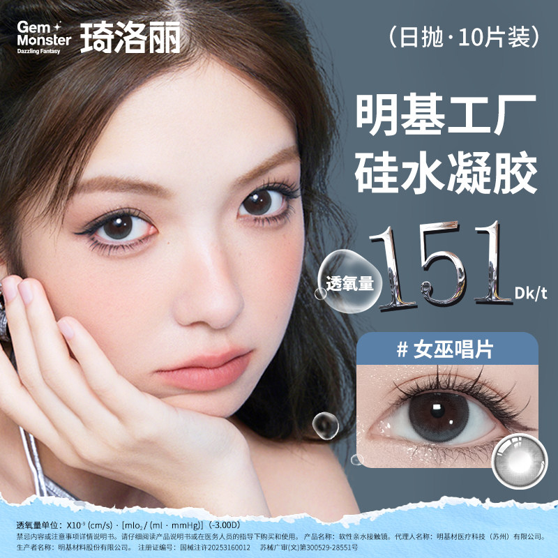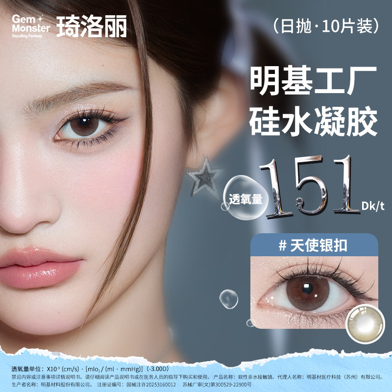 Gem Monster琦洛丽硅水凝胶美瞳日抛10片高透氧自然彩色隐形眼镜