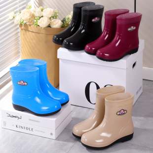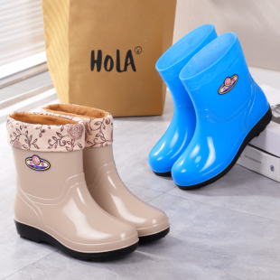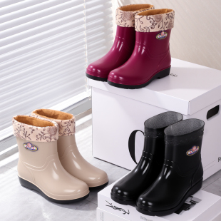 成人加绒雨靴厨房防水防滑胶鞋 冬外穿水鞋 长筒靴子 女时尚 加厚雨鞋