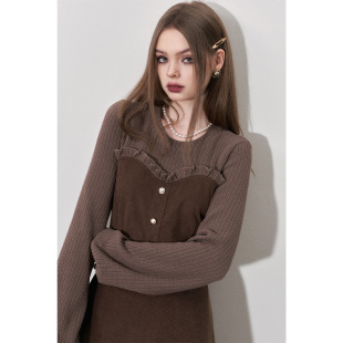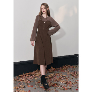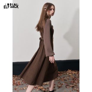 新款 收腰连衣裙女2026年冬季 高级感长裙子 口袋针织提花法式 妖精
