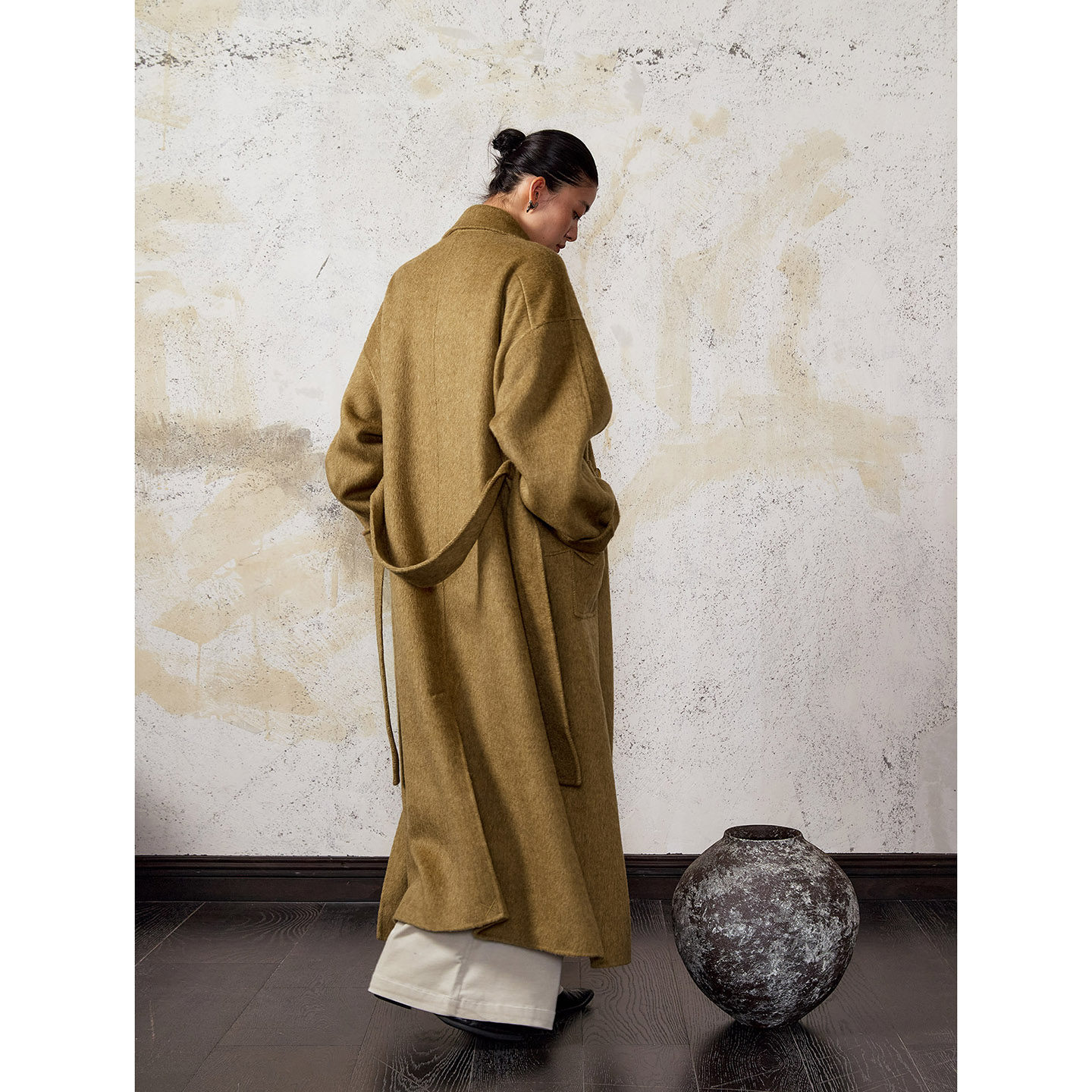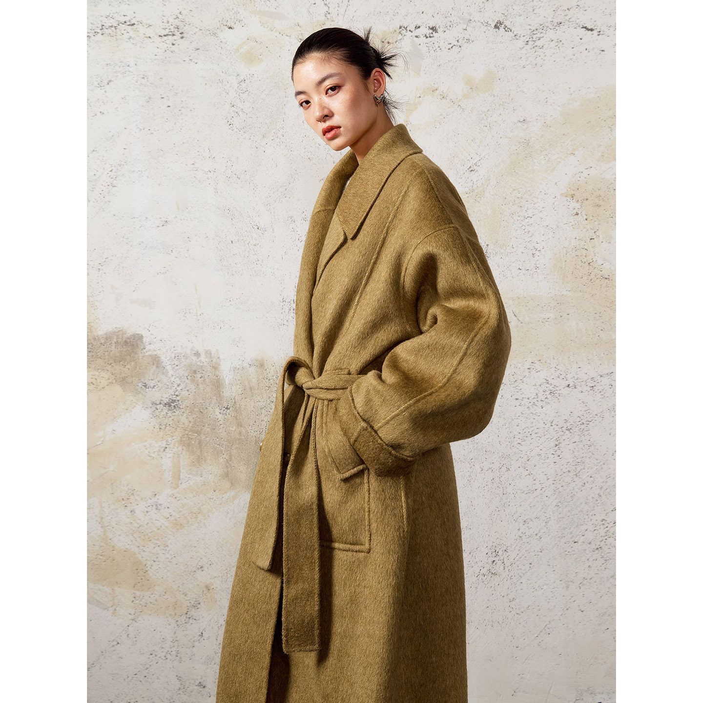 立领风衣外套 配腰带夹棉秋冬毛呢长款 PMET 多形态翻领毛呢大衣